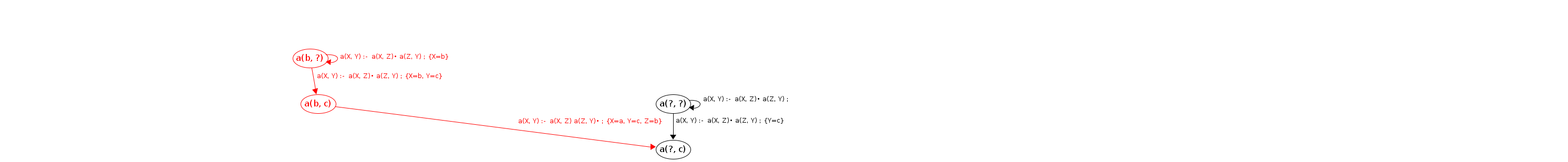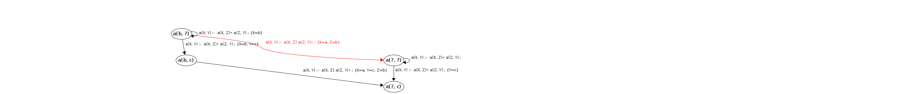 Processing a(b, ?) codePos a(X, Y)→•a(X|b,Z), a(Z,Y)