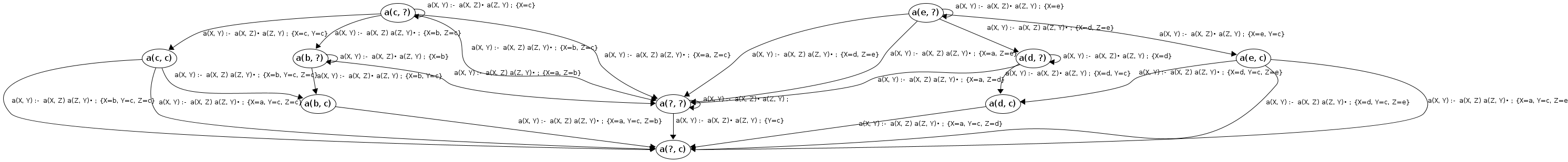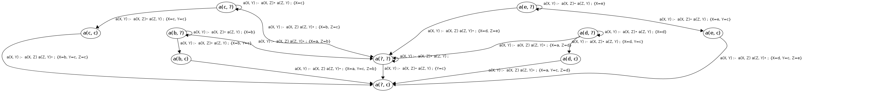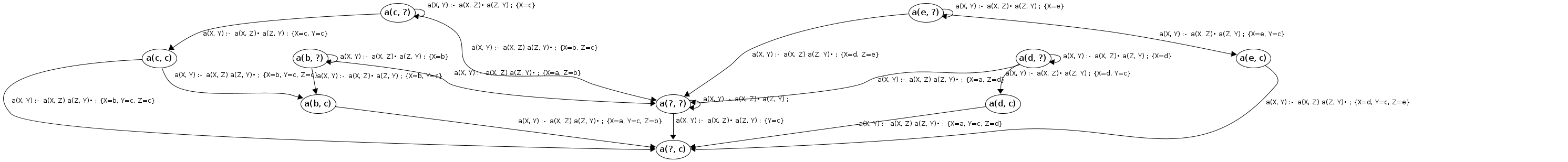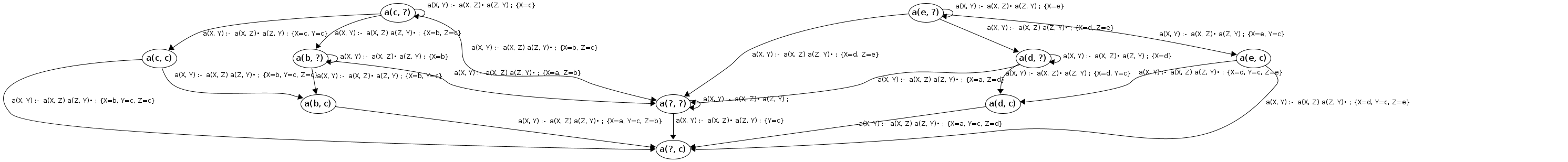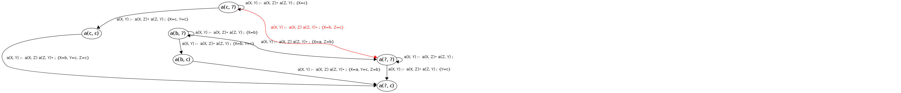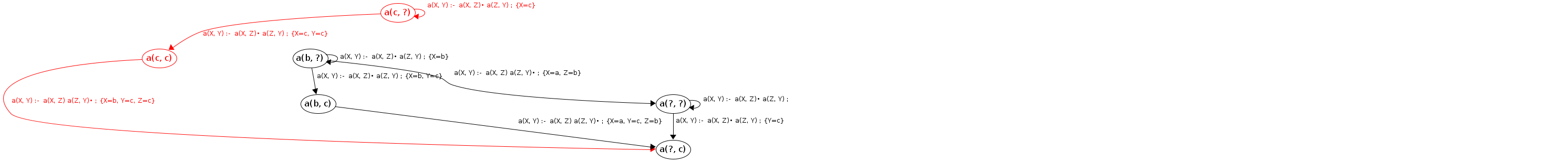Processing a(c, ?) codePos a(X, Y)→•a(X|c,Z), a(Z,Y)