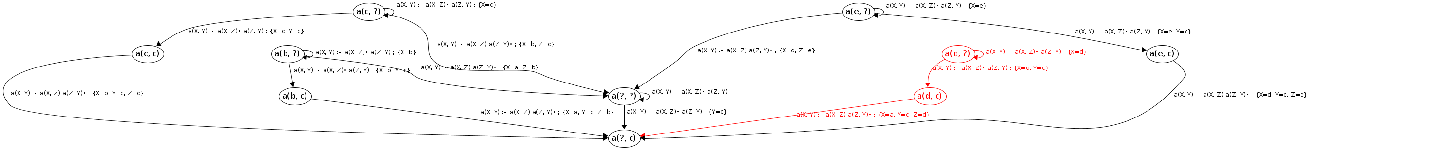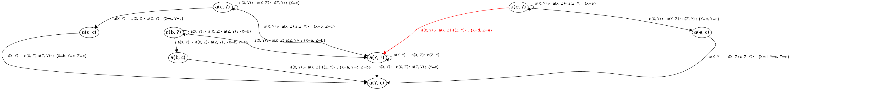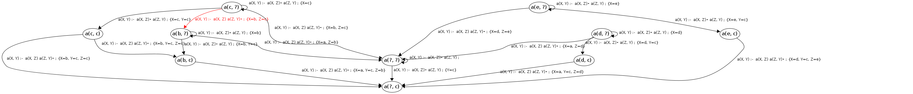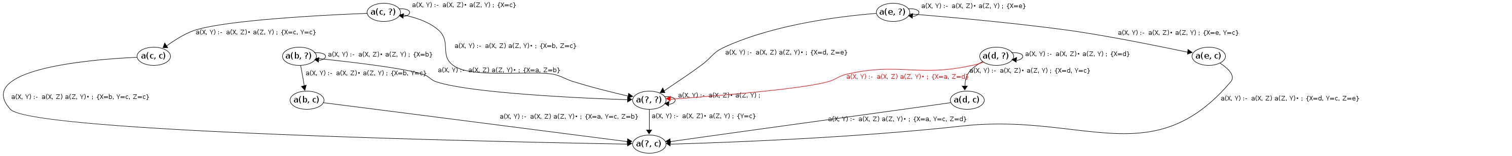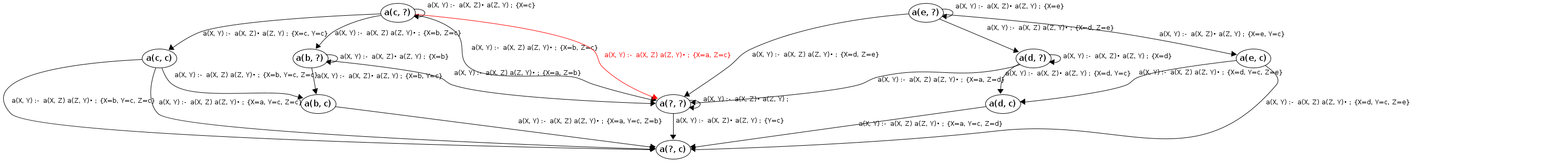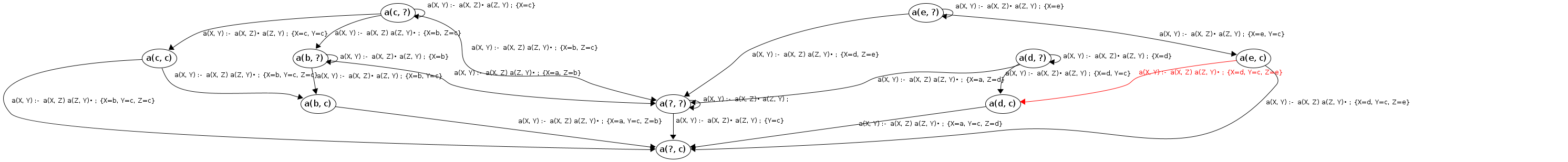 Processing a(c, ?) codePos a(X, Y)→•a(X|c,Z), a(Z,Y)