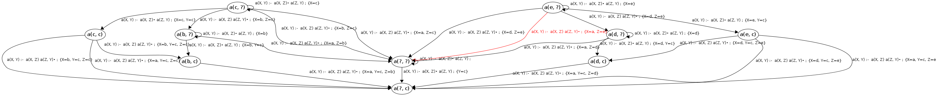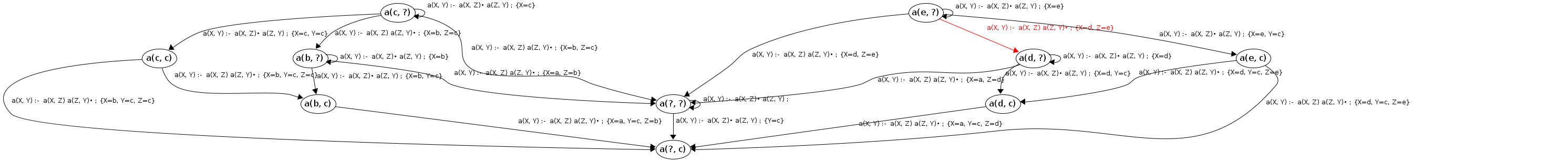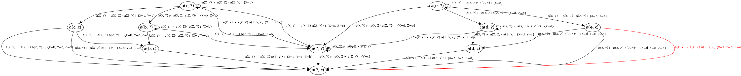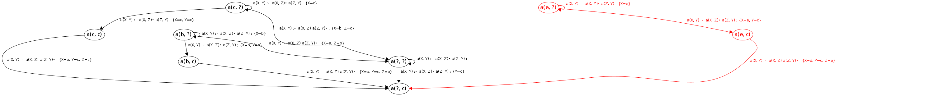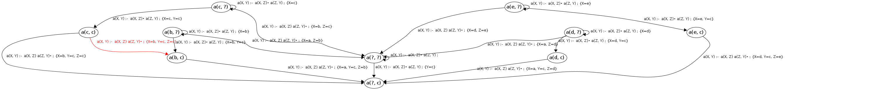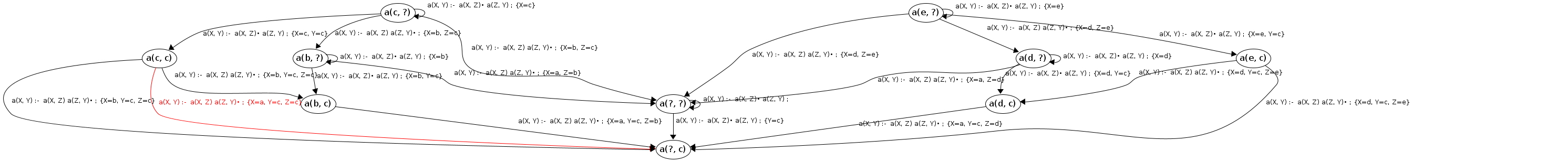 Processing a(c, ?) codePos a(X, Y)→•a(X|c,Z), a(Z,Y)