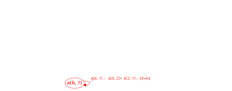 Processing a(b, ?) codePos a(X, Y)→•a(X|b,Z), a(Z,Y)