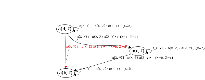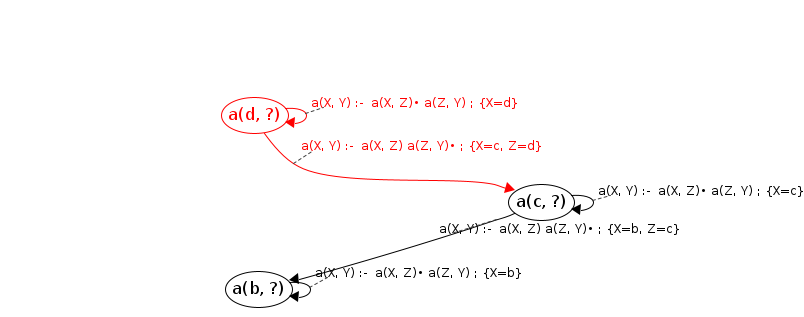 Processing a(d, ?) codePos a(X, Y)→•a(X|d,Z), a(Z,Y)