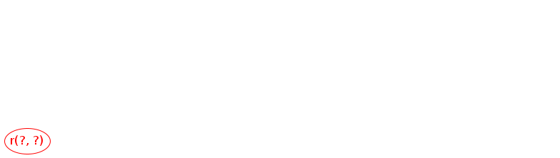 newVars: {X=m} Processing r(?, o) codePos r(X, Y)→f(X|m,Y|o)•