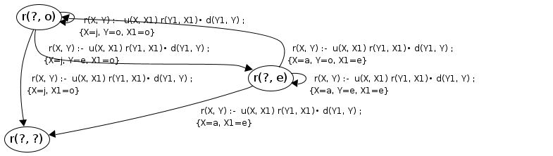 newVars: {X=j, X1=o} Processing r(?, o) codePos r(X, Y)→u(X|j,X1|o)•r(Y1,X1|o), d(Y1,Y|o)