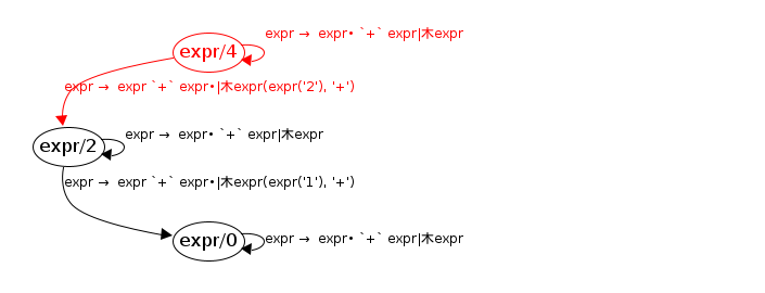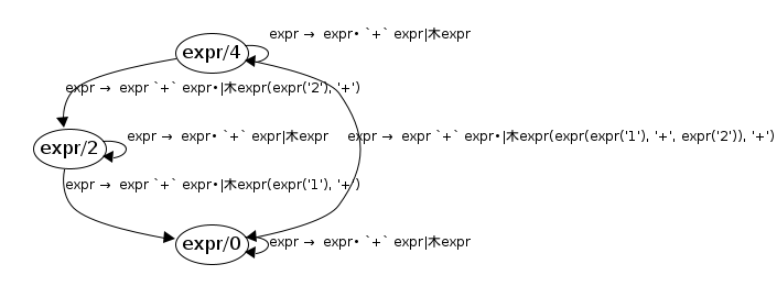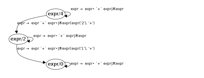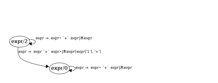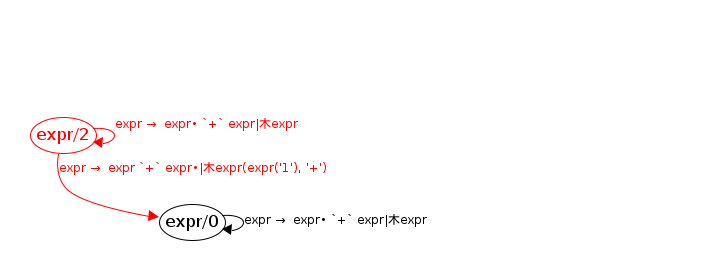 expr/0 → expr/0 ; expr → expr• `+` expr ; expr