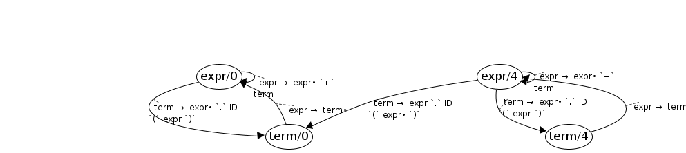 expr/0 → expr/0 ; expr → expr• `+` term ; expr
