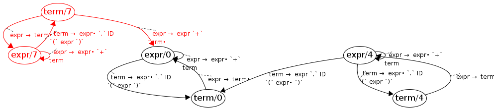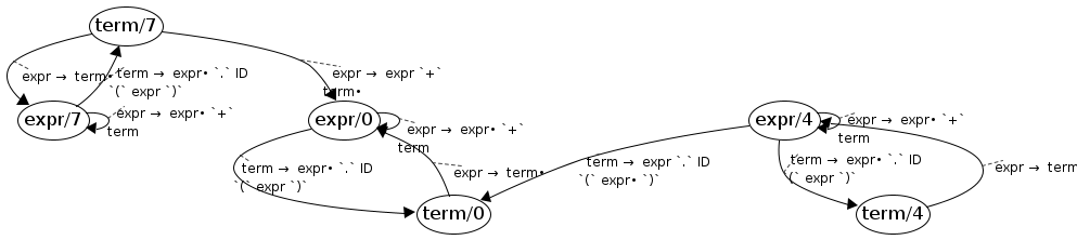 expr/7 → expr/7 ; expr → expr• `+` term ; expr